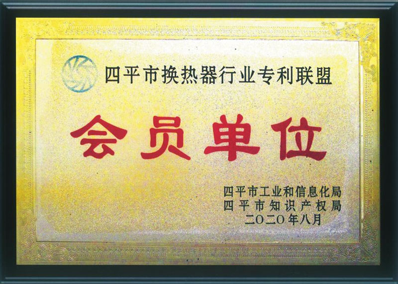 四平市工業和信息化局四平市知識產權局頒布的四平市換熱器行業專利聯盟會員單位